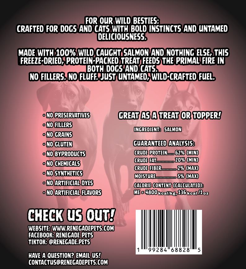 Spoil your pets with the wholesome, high-quality treat they deserve. RENEGADE Fierce - Freeze-Dried Salmon is the natural choice for happy, healthy companions!